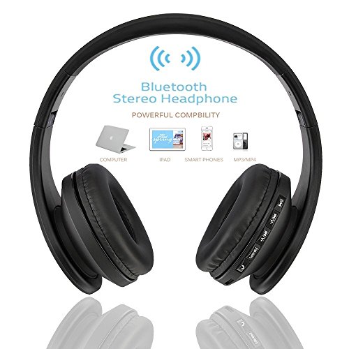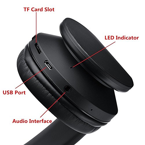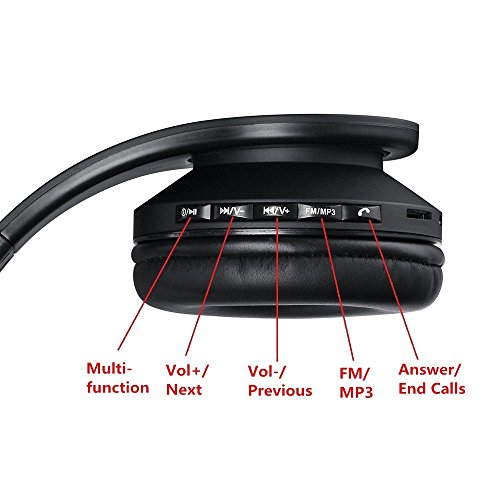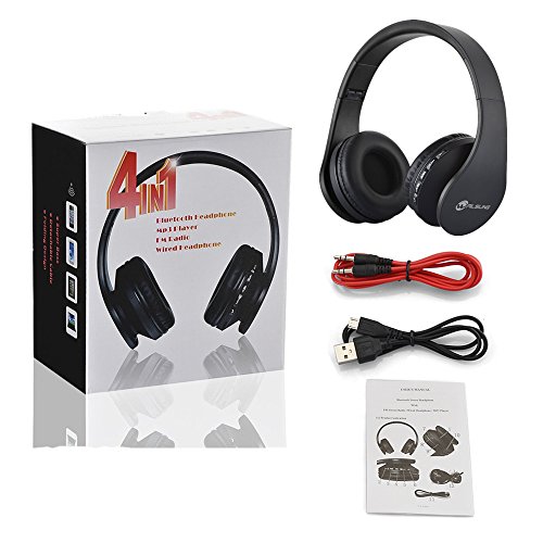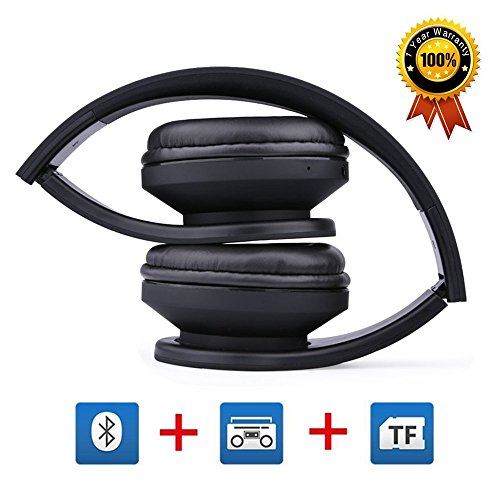 Walsung Bluetooth Headphones Over-ear Stereo Wireless + Wired Headset with Microphone Support TF Card, FM Radio,Music Streaming, Hands-free Calling for Cell Phone,PC,LG,Moto,iPad,PSP (Black)