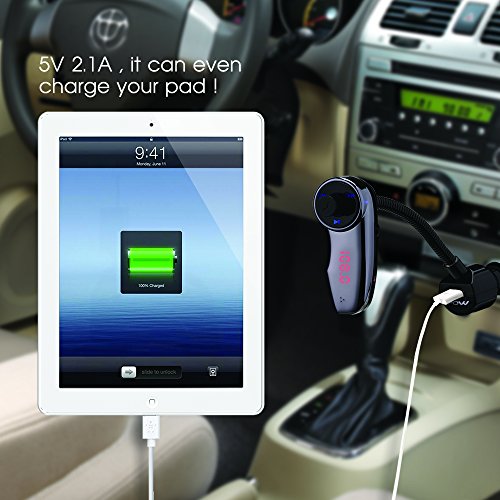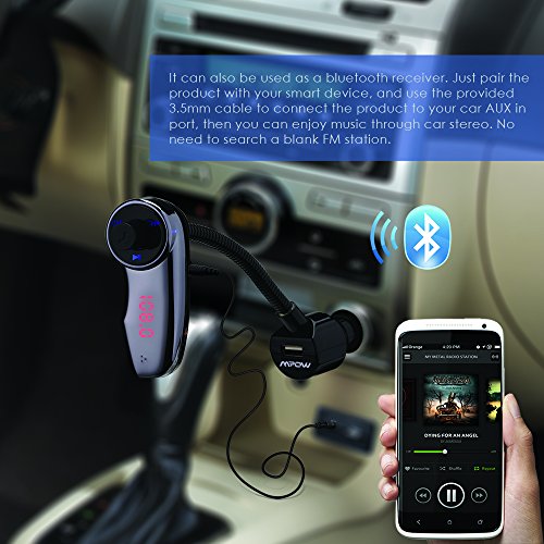 It can also be used as a bluetooth receiver! just pair the product with your smart device, and use the provided 3.5mm cable to connect the product to your car AUX-in port, then youcan enjoy music through car stereo.No need to search a blank FM station.