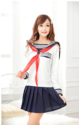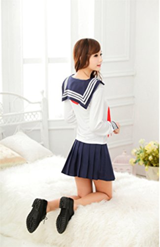 IIHI (Iihi) cute female student long-sleeved sailor's Clothing Costumes pleated skirt ribbon three-piece set navy blue / high school uniform cosplay costume pleated skirt Blue / Women's female adult for one-size-fits-all (S M L XL) fancy dress / high