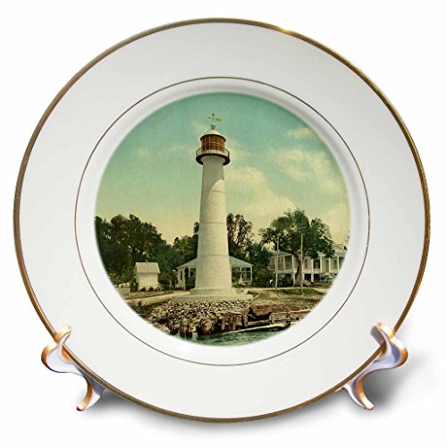 3dRose cp_26381_1 Vintage 1901 Biloxi Lighthouse-Porcelain Plate, 8-Inch