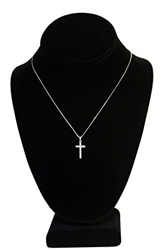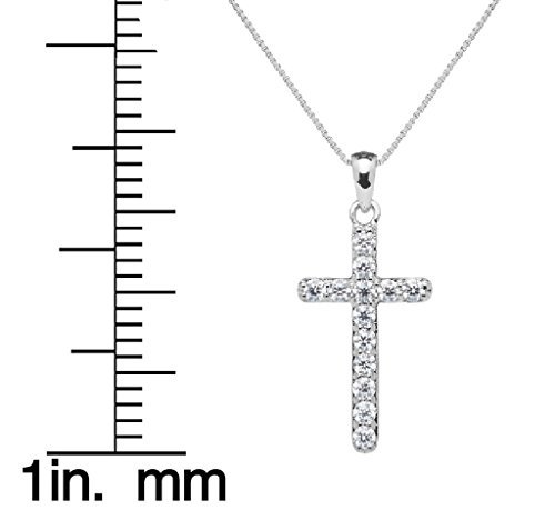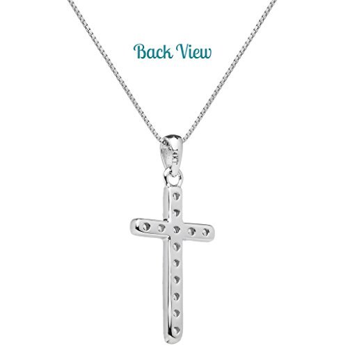 -. Title : 14K Solid White Gold Cross Pave Round Cut Cubic Zirconia Pendant Necklace, 16 Box Link Chain (.26 cttw), Gift Box