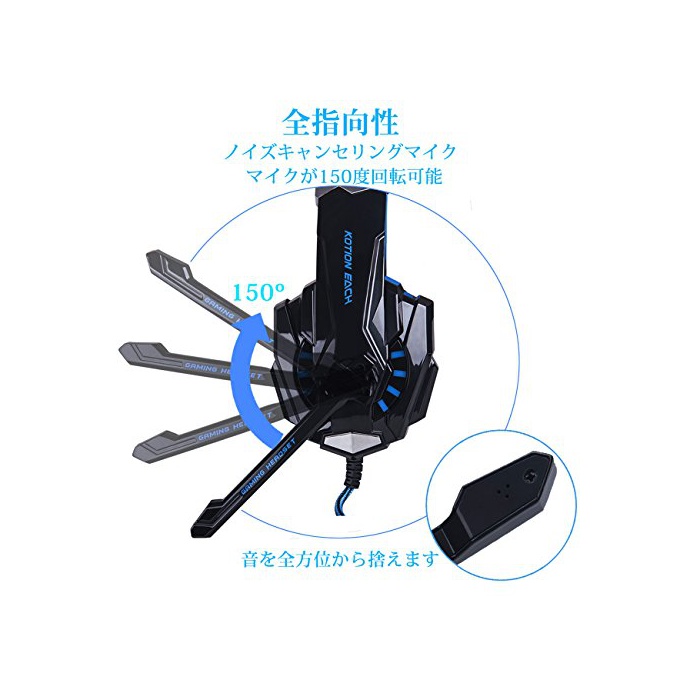 게임 분위기:노이즈《갼세린구》기능으로,현 하여 있어 LED라이트가 이어 커버에 설계하고, 게임의 분위기를 강조합니다.부드러운 고무에 마이크가 150도 조정 가능합니다