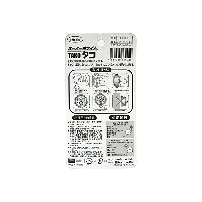 원본상품명:光 超力吸盤フック スパタコ 耐荷重:8kg