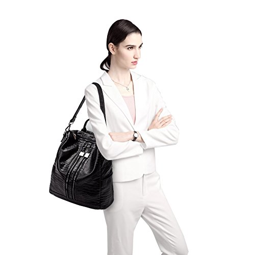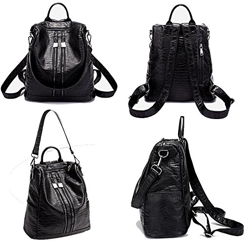 Women Lightweight Leather Backpack Black Purse Versatile Shoulder Bag Classic Fashion PU Leather