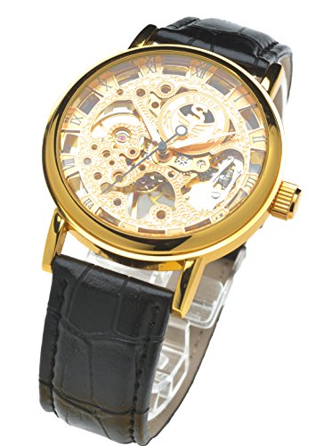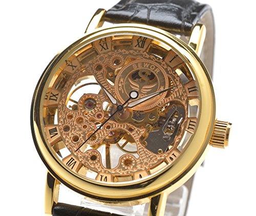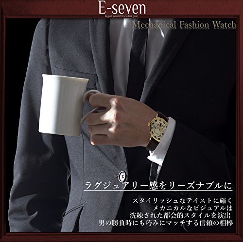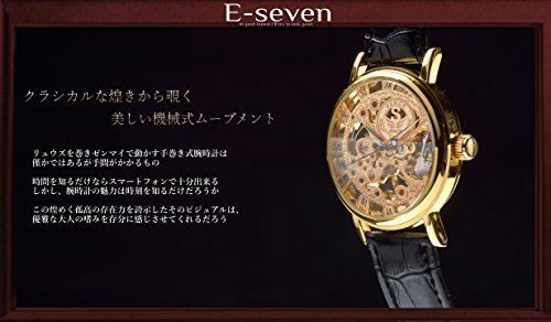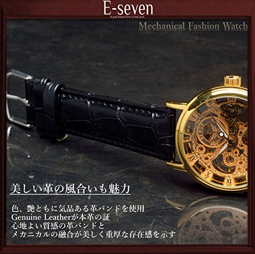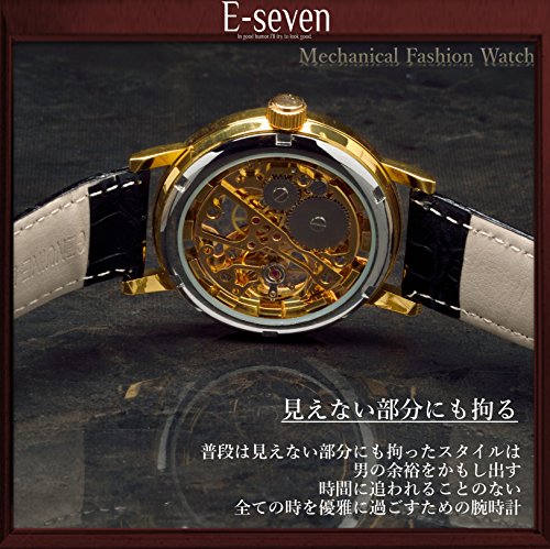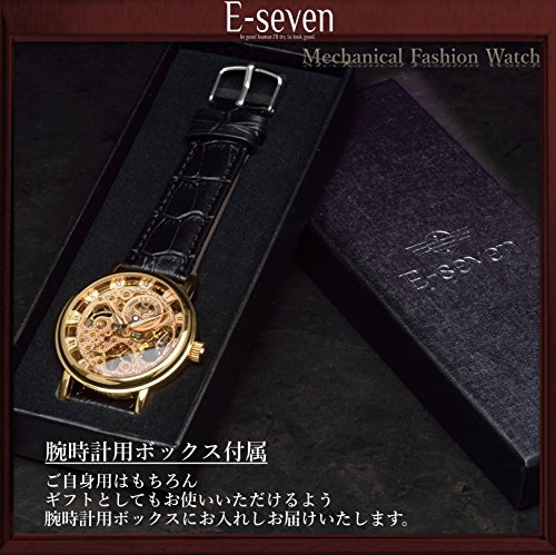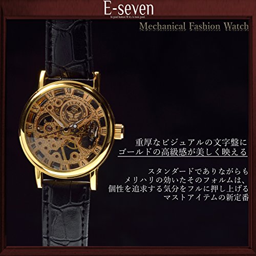 원본상품명: E-seven(イ?セブン) 腕時計 メンズ スケルトン 手?き 自動?き 機械式 革 レザ? tfsle (ブラック×ゴ?ルド)