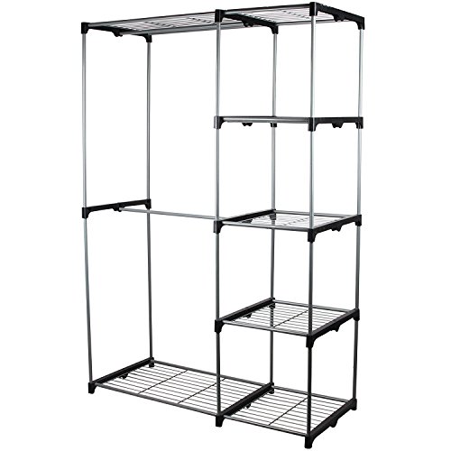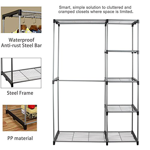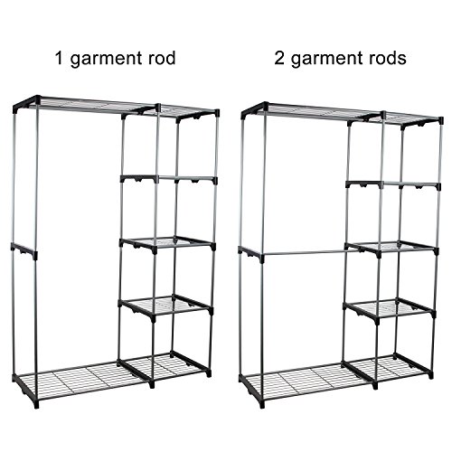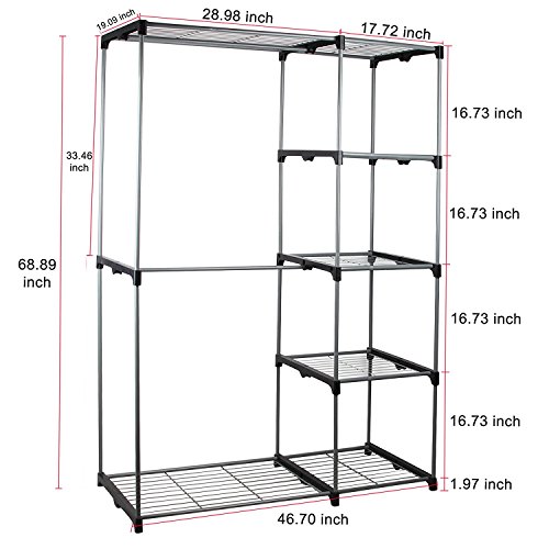 Double Rod Portable Clothes Storage Rack Freestanding Closet Wardrobe with Steel and Plastic Frame CL68
