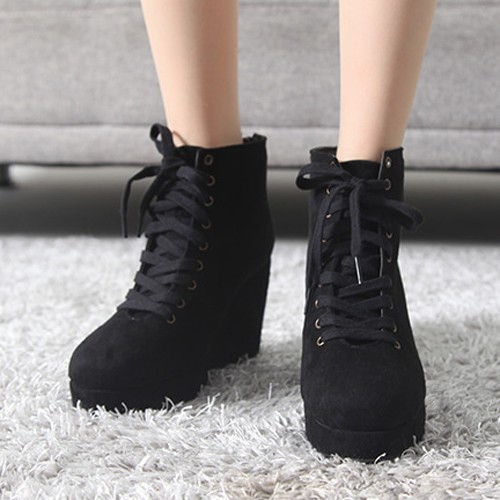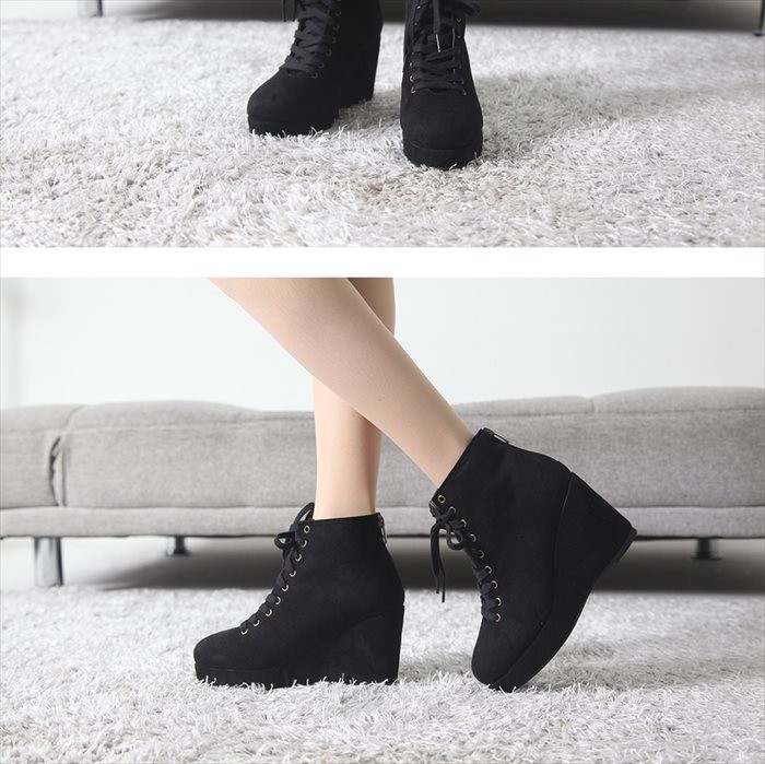 商品名:スニーカー レディース レースアップ スエード調 厚底 2017 秋冬 ファッション 靴 婦人靴