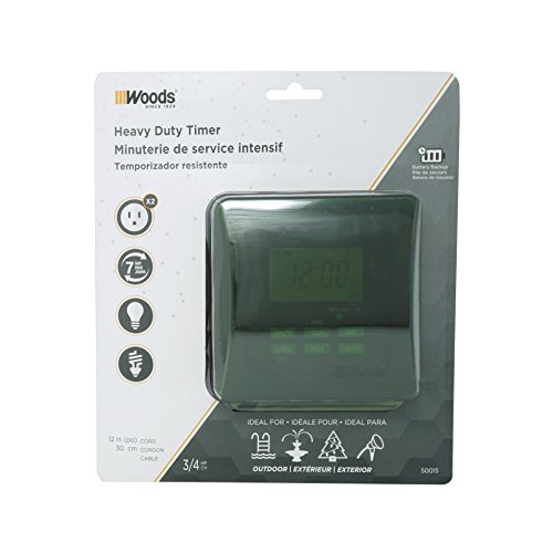 Woods 50015WD Outdoor 7-Day Heavy Duty Digital Plug-In Timer, 2 Grounded Outlets