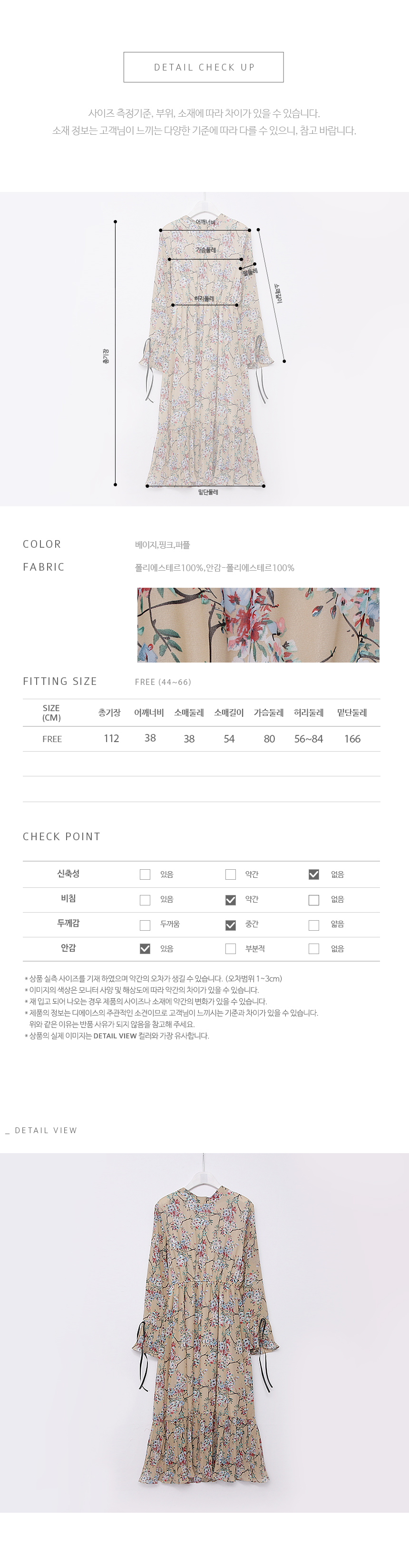 색상은 베이지, 핑크, 퍼플 사이즈는 FREE44~66