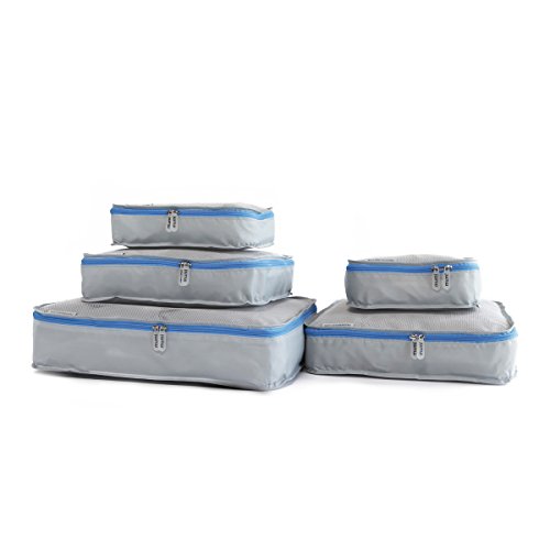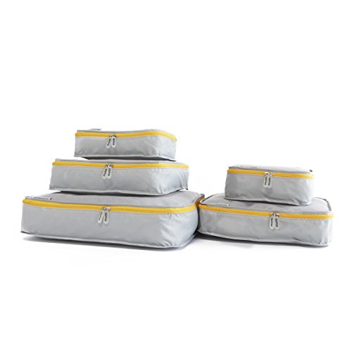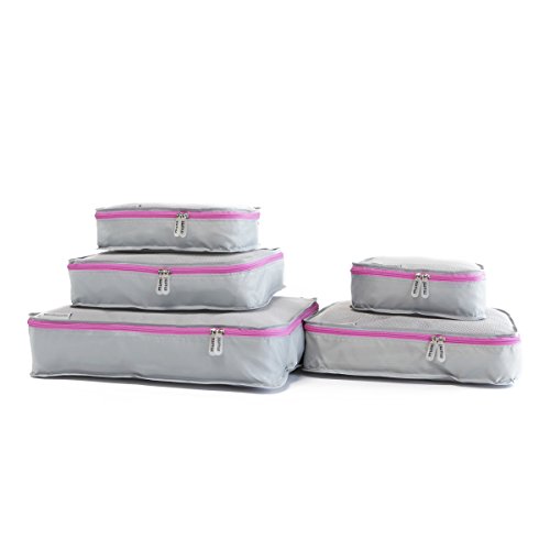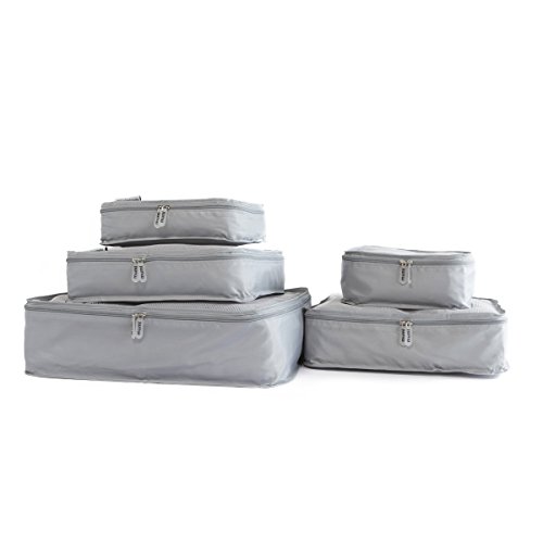 Product Description This set of packing cubes contains 5 different sizes of lightweight packing cubes that will help you sort and organize your clothing while you travel. The company makes 7 different colors so that each member of the family can have one, making it easy for everyone to know where their things are. 0