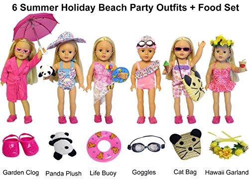 -. Title : 27-Piece 18 inch Doll Clothes and Accessories - American Summer Holiday Beach Party Swimsuit Sets & Bathrobe Fits for 18 inch Girl Dolls