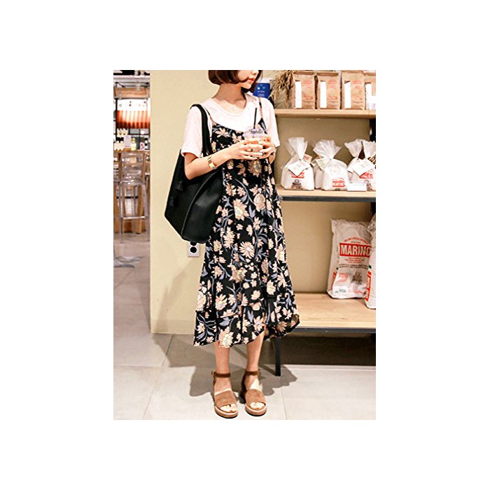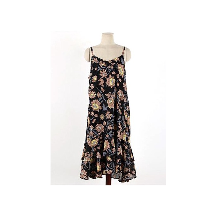 (Les Hiboux) 로맨틱 꽃무늬 캐미숄 원피스 레트로 프린트 미모레장 스커트 (크림)