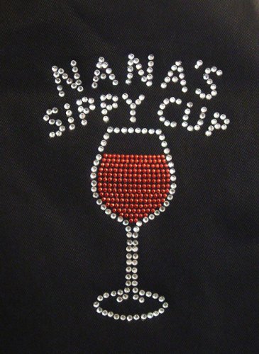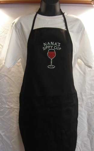 Classic Black Apron - " Nanas Sippy Cup" - Rhinestone Cotton/Poly Blend Two Pocket Wine Themed Apron
