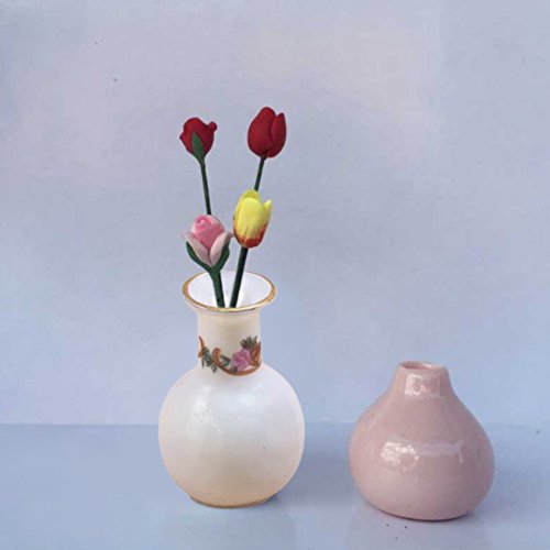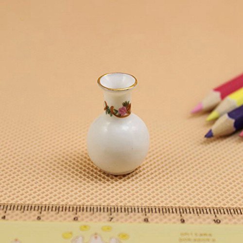 -. Feature : Dollhouse Miniature Ceramic Flower Vase / Great display for your doll house. / Size (CM):Height 3, belly diameter 2 / Suitable for 1/12 Dollhouse / The package includes: 1 x 1:12 Dollhouse miniature flower vase