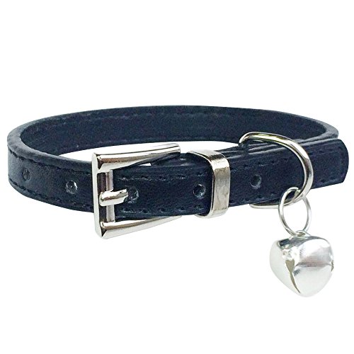 (Sanwood)/Pet Supplies/Flea Tick Control/DIRECT FROM USA/Fashion Adjustable PU Leather Pet Collars with Bell for Cats,baby Puppies Dogs (XXS , Black )