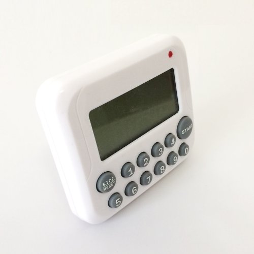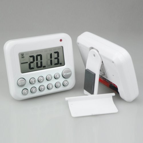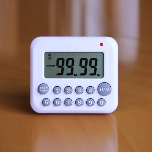 - Feature : Classic large display timer (mm/ss) with stand and magnet. Timer: 3.2"x 2.9"x 0.8". LCD display: 2.1"x 0.75". / Count up: UP shows on display; Count down: DOWN shows on display. Up to 99M:59S. Input numbers directly, so easy! If wrong number entered, simply press RESET to clear. / Counting: Press START to start, and STOP to pause. Then press START to continue or RESET to clear. Last setting shows. / Loud ascending beeping alarm with flashing red light for 60 seconds. Alarm can be stopped by STOP. / If it's on but not working, it will turn off after 10 minutes. Requests 2 AAA batteries (not included).