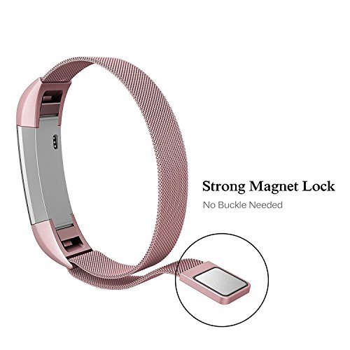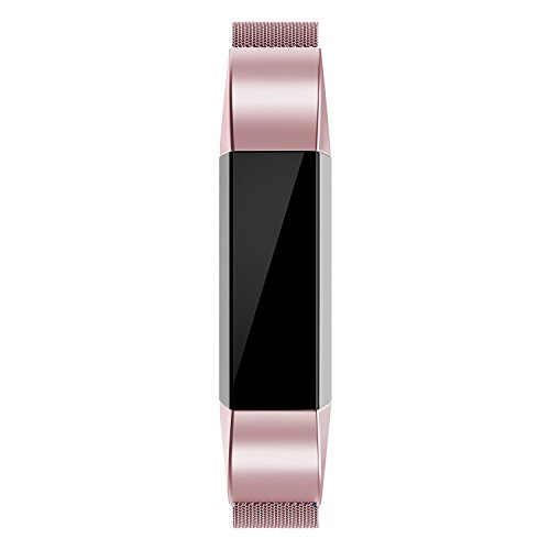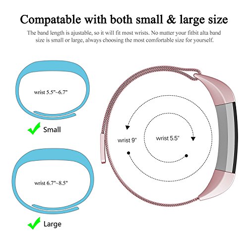 Tinghao Milanese Stainless Steel Metal Replacement Accessories Metal Small & Large Band for Fitbit Alta HR and Alta, Rose Pink