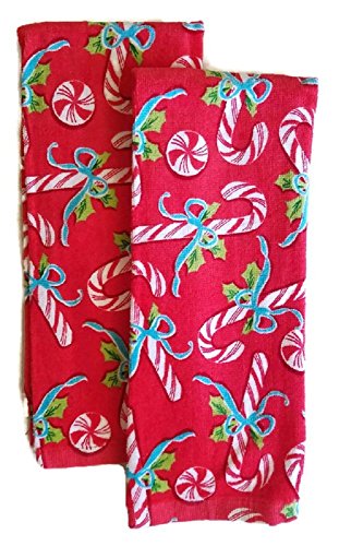 Holiday Kitchen Dish Towels Candy Cane and Holly Decor Set of 2