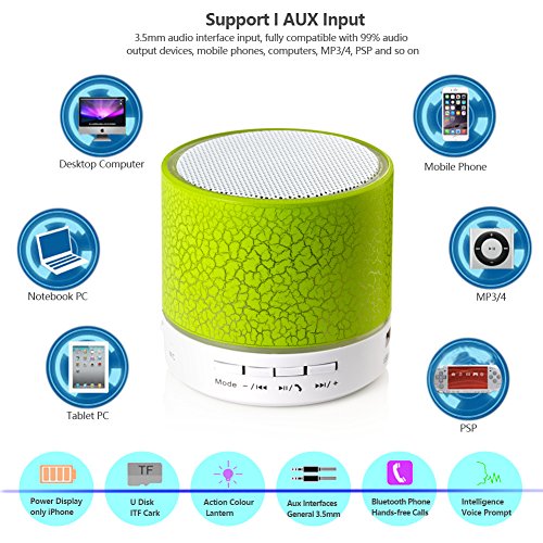 -. Title : Leacoco Mini Wireless Portable Bluetooth Speakers with Mic and Sucker Portable Small Stereo for iPhone and Android System Equipment Etc.