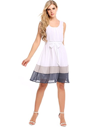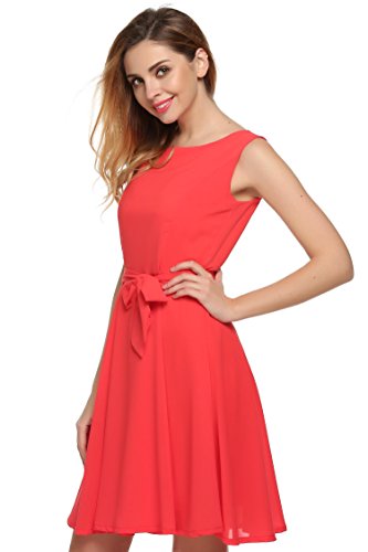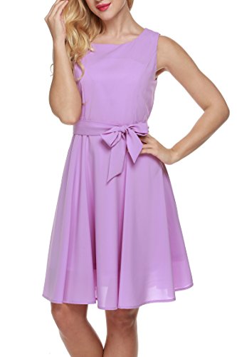 Design: Sleeveless, O-neck, Solid color, A-line swing hem,Waistband decoration, Above knee length pleated dress. Butterfly tie of the belt
