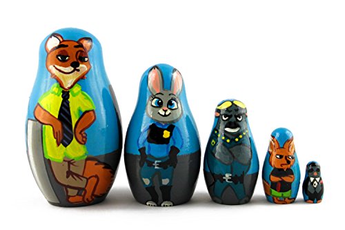 -. Title : Matryoshka Matrioska Babuska Russian Nesting Wooden Doll Zootopia Zveropolis Judy Hopps Nick Wilde Babouska Babushka 5 Pcs Stacking Painting Matriosjka Matreoska Matreshka Matrjoska Matroeska