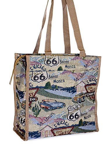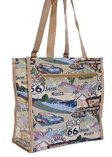 -. Title : J Garden Route 66 Tapestry Travel Tote Bag with Coin Purse 12-inch