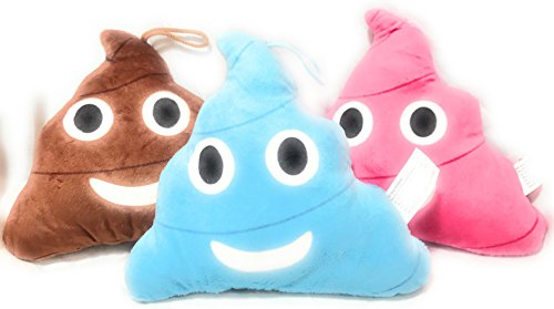 -. Feature : 3 Pack Emojis with hook at top to hang poop easily / Plush Toys for any age! Don't forgot your dog, cat, birthday, girls, kids, boy and the next party you goto bring a gift of silly poop! / Made with quality, long lasting, materials / Bright colors with Pink, Brown and Light Blue / Perfect high quality lint-free smiley cute emoji, great hand feeling, soft and no odors. Also the happiest thing in the world! Great way