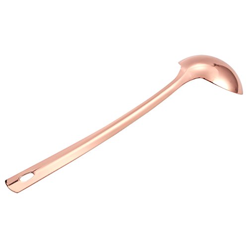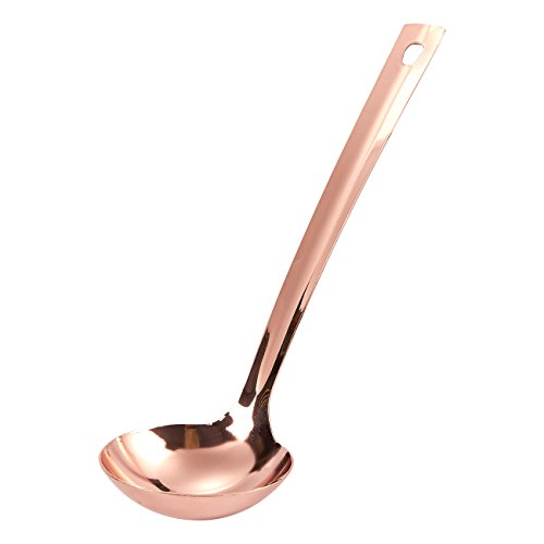Studio : Juvale Publisher : Juvale Product Description This beautifully crafted scooping ladle coated in copper is a must-have addition to any table setting. Featuring a sleek design, this ladle will add a touch of elegance to your dining table. It is very versatile in its use, great for serving soups, stews, punch and sauces during family gatherings, Thanksgiving, gourmet dinners and other special occasions. Simply hand wash in the sink to clean it afterwards. 0