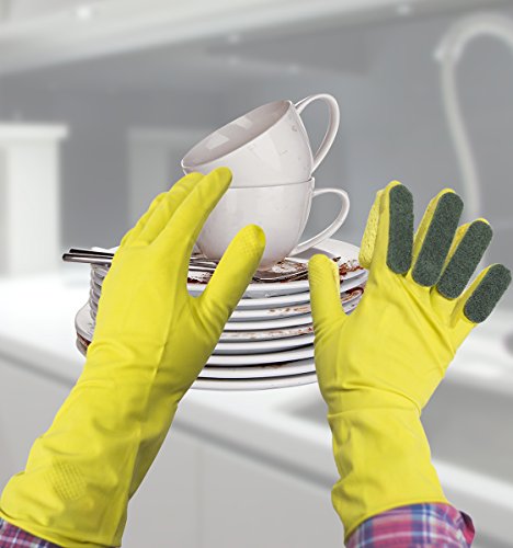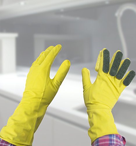 - Feature : GlovEasy® - Includes one special right handed cleaning glove and one regular left hnaded glove. / DURABLE - Both flock lined gloves are made of latex for long lasting results / SPONGE & SCOUR PAD - Each packet includes one right handed glove with scrub and sponge attached / SAVE TIME & MONEY - Combining the three most common household cleaning tools into one glove!