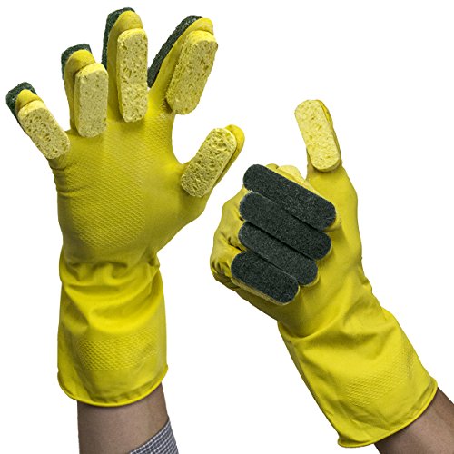 - Title : GlovEasy® Cleaning Glove Sponge Finger Scrub Scouring Pads all-in-one for Home Kitchen Durable Rubber/Latex Powder-Free Disposable Multi-Use - Reduces Bacteria & Germs - New Patented Technology