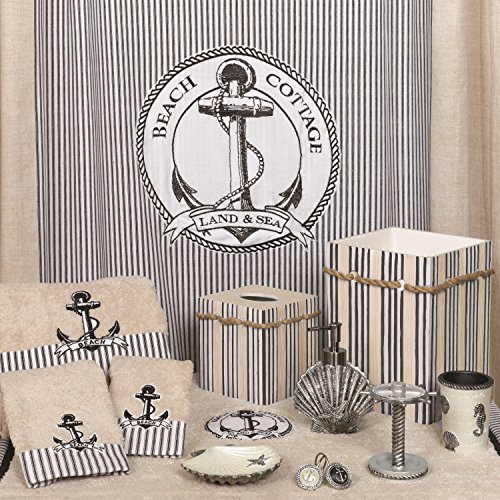 Studio : Zenith Products Corporation Publisher : Zenith Products Corporation Binding : Misc. Product Description Find coastal sophistication at its best with the Beach Cottage shower curtain hooks. Pearl and slate colored hooks are complimented by intricately carved anchors. Rope-like borders are chiseled and finished with tonal pewter coloring brining the phrase "Land Sea" to life. Use the shower curtain hooks on their own or pair with matching textiles and accessories for a complete look. Constructed of sturdy, durable, easy care resin, simply wipe clean with a damp cloth. Call us toll-free at 800-892-3986 with any additional questions. Zenith Products Corp. is the leading manufacturer and supplier of shower rods and caddies, medicine cabinets, bath furniture and accessories. 0
