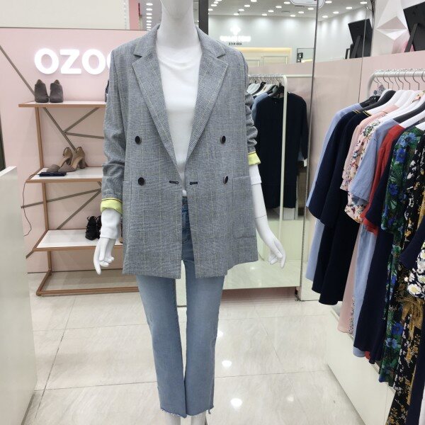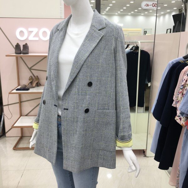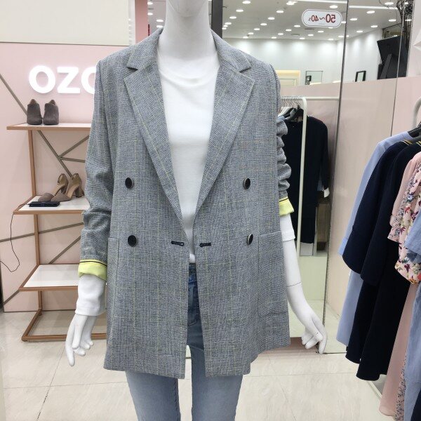딱 떨어지는 체크패턴의 테일러드 자켓입니다. 소매안감 배색이 들어가있어 소매 롤업하여 포인트컬러로 매치하기 좋습니다.