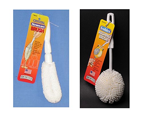 -. Feature : Reinforced foam bristles will not scratch or mark your most delicate stemware and glassware / Brush reaches to the bottom and cleans goblets / Brush stays soft and maintains its fluffy appearance, without becoming soggy / Dishwasher safe