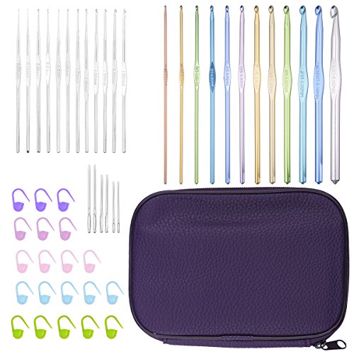 - WHAT IS INCLUDED IN THIS KIT?12 pieces stainless steel hooks' sizes (0.6, 0.75, 0.85, 0.9, 1.0, 1.1, 1.25, 1.4, 1.5, 1.6, 1.75 and 1.9 mm)+12 pieces Useful colorful crochet hook(B/1-2.25MM,C/2-2.75MM,D/3-3.25MM,E/4-3.5MM,F/5-3.75MM,G/6-4.0MM,7-4.5MM,H/8-5.0MM,I/9-5.5MM,J/10-6.1MM,K/10 1/2-6.5MM,L/11-8.0MM)+6 pieces Large-eye Blunt Needles(5.3 cm, 6 cm, 7 cm, each size 2 pieces)+20 pieces Plastic Split Ring Markers with Purple Bag