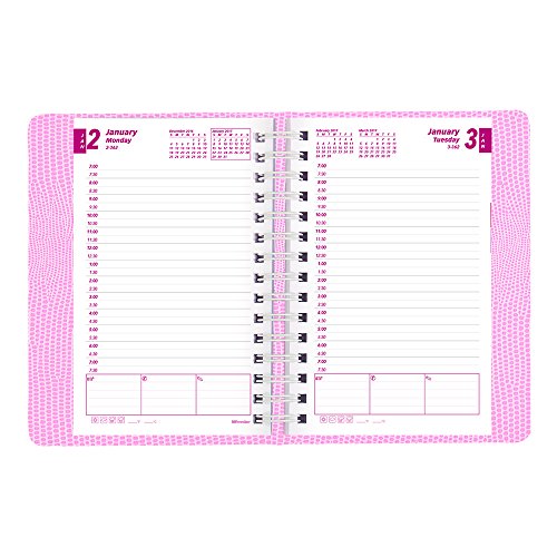 -. Feature : Appointment schedule from 7:00 am to 7:30 pm in 1/2 hour intervals, for full week / Monthly planner before each month / Each page has 3 blocks for reminder notes and calls / Past, current and following months on each spread / Twin-wire binding with soft lizard-like cover