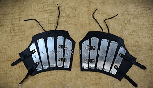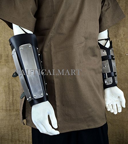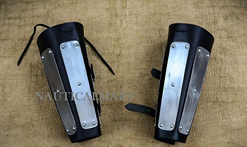 Studio : NAUTICALMART INC Publisher : NAUTICALMART INC Product Description These Splinted Bracers are crafted from plates of 18 gauge steel which have been stoutly riveted to a backing of thick leather. A set of adjustable steel buckles with thick leather straps fit and adjust the bracers to the forearm. Please Note: Tunic, Gambeson and Belt not included - they were photographed for demonstration only. 0