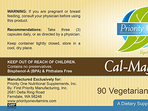 -. Binding : Health and Beauty -. Brand : P.R.Iority One Vitamins -. EAN : 0815354020259 -. Feature : Supports healthy bone density and strength.* / Vegetarian/Vegan calcium, magnesium and vitamin D supplement / Vitamin D2 ergocalciferol is sourced from a vegan/vegetarian Agaricus bisporus (whole mushroom). / Natural Ingredients. Natural formula. This product is non-GMO and gluten free. Made in USA at FDA cGMP Registered Facility. / Highly bioavailable calcium and magnesium chelates, providing support for bone and cardiovascular health. -. IsAdultProduct : 0 -. Label : P.R.Iority One Nutritional Supplements Inc./First P.R.Iority Manufacturing Inc. -. Manufacturer : P.R.Iority One Nutritional Supplements Inc./First P.R.Iority Manufacturing Inc. -. MPN : 1659 -. PackageQuantity : 6 -. PartNumber : 1659 -. ProductGroup : Health and Beauty -. ProductTypeName : HEALTH_PERSONAL_CARE -. Publisher : P.R.Iority One Nutritional Supplements Inc./First P.R.Iority Manufacturing Inc. -. Studio : P.R.Iority One Nutritional Supplements Inc./First P.R.Iority Manufacturing Inc. -. Title : P.R.Iority One Vitamins Cal Mag + D2 90 Vegetarian Capsules - Vegan & Vegetarian Friendly Calcium Magnesium Supplementation for Strong Bones -. UPC : 815354020259