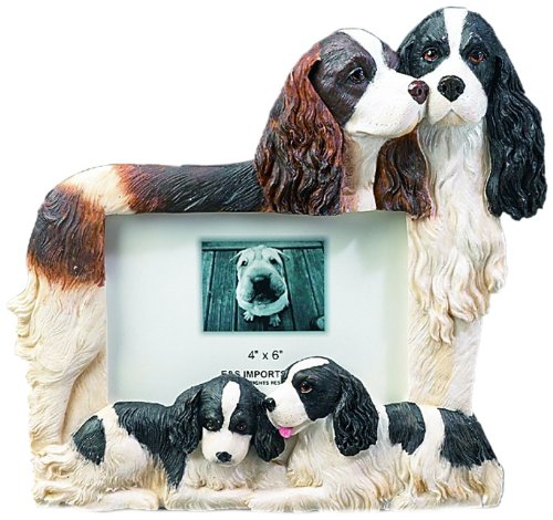 Springer Spaniel Gift Picture Frame Holds Your Favorite 4x6 Inch Photo, A Hand Painted Realistic Looking Springer Spaniel Family Surrounding Your Photo. This Beautifully Crafted Frame is A Unique Accent to Any Home or Office. The Springer Spaniel Picture