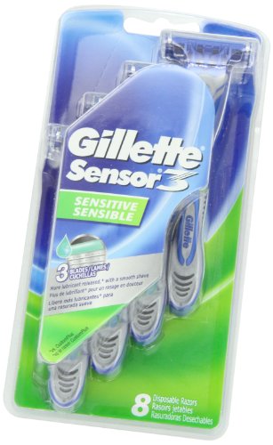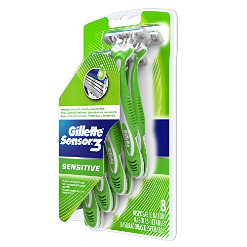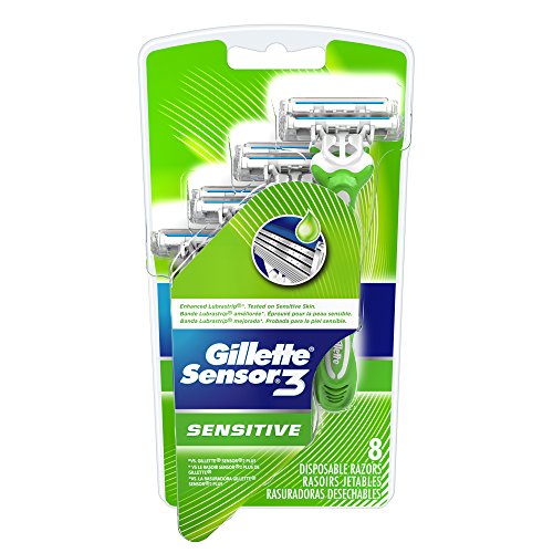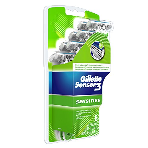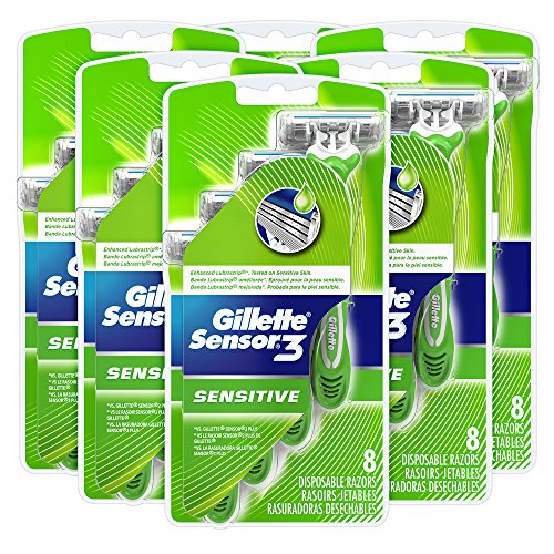 Gillette Sensor3 Sensitive Men's Disposable Razor, 8 Count (Pack of 6), Mens Disposable Razor / Blades