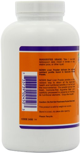 Argentine Beef Super Food Low Heat, Desiccated Non-Defatted A Dietary Supplement NOW® Beef Liver powder provides a convenient way to obtain all the legendary health and nutritional benefits of liver without the inconvenience. Our powder comes from fresh, hormone-free Argentine Beef Liver carefully processed to preserve all the fragile nutritional elements. Enjoy the results! Read FAQ'sFeature