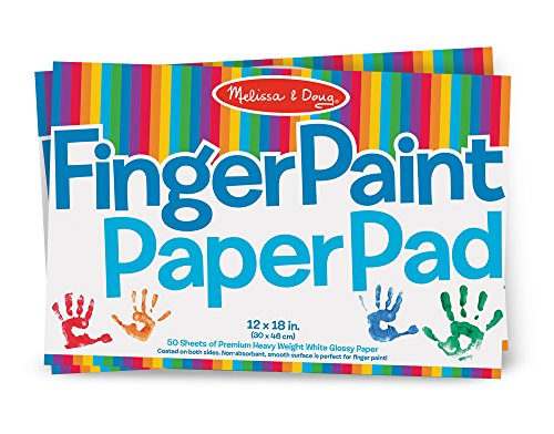 Double the amount of hands-on creativity with two generously sized finger paint paper pads! made from heavy weight white glossy paper, the 50 sheets in each pad (100 sheets total) are coated on both sides for extra durability. The smooth, non-absorbent surface can handle lots of paint without bleeding through. Budding young artists two and older will love using the 12" x 18" top-bound pad on a table, an easel, or they can spread out on the floor to create finger paint masterpieces!.Feature