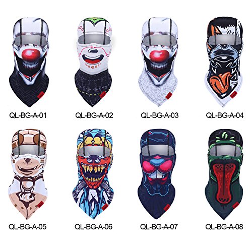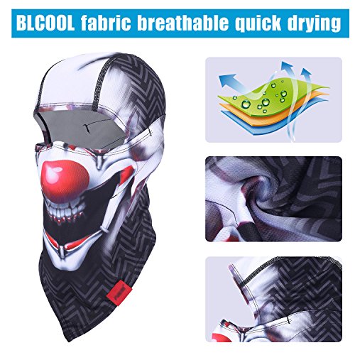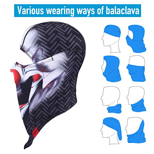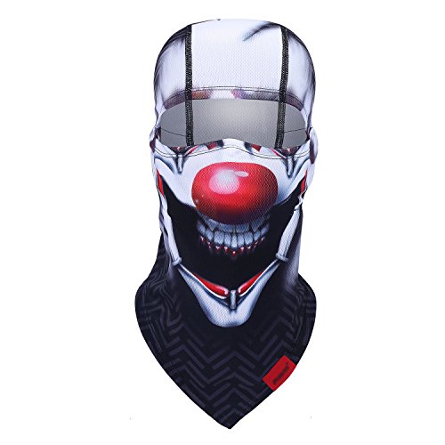 Multi-function Clowns Mask: Can be worn as an open or closed balaclava, hat, face mask, Beanie, Neck Gaiter. Use it as added protection and insulation under any helmet or hat. Suitable for climbing, running, cycling, motorcycling, boating, skating, skiing, surfing, hiking