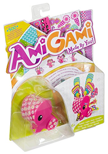 AmiGami is a totally new way to play and express your creativity! This set includes an adorable plastic AmiGami rabbit figure ready for you to make a one-of-a-kind creation. Choose from 30 different AmiGami paper parts -- like ears, tails, wings and hair -- that have colorful patterns on both sides and can be shaped to any style. Simply punch out a paper part and use the jewel pins to attach onto the plastic figure. There is no wrong way to create your AmiGami figure -- you can use tails as ears or ears as wings! Also includes a curling tool to make awesome spirals. Add on even more cuteness with 70 reusable stickers to choose from, such as a variety of eyes, jewelry, hearts, glasses and more. You can keep it simple, make it wild, stack them or curl them! With more than 500 combinations to create, every AmiGami figure is unique because they are Made by You!TM".