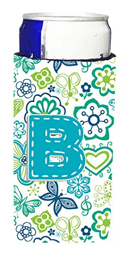 Letter B Flowers and Butterflies Teal Blue Ultra Beverage Insulators for slim cans CJ2006-BMUK