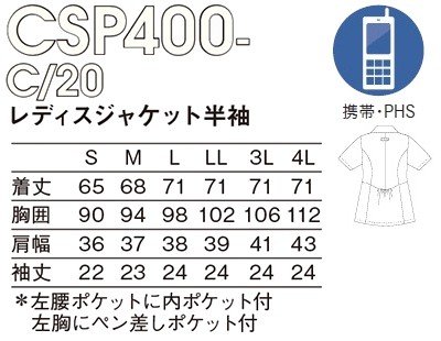 원본상품명: カゼン KAZEN CSP400 レディスジャケット半袖 S~4L (L) 白衣 ナ?スウェア