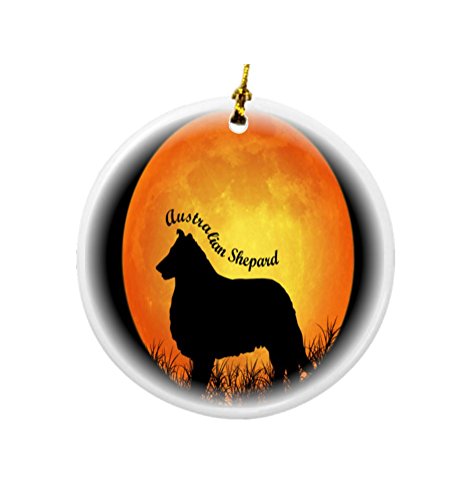 Rikki Knight Australian Shepard Dog Silhouette by Moon Design Round Porcelain Two-Sided Christmas Ornaments