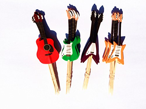 Babycola's Mum 24 Pcs Guitar Themed Decorative Cupcake Topper for Music Party Kids Birthday Party Themed Party Baby Shower