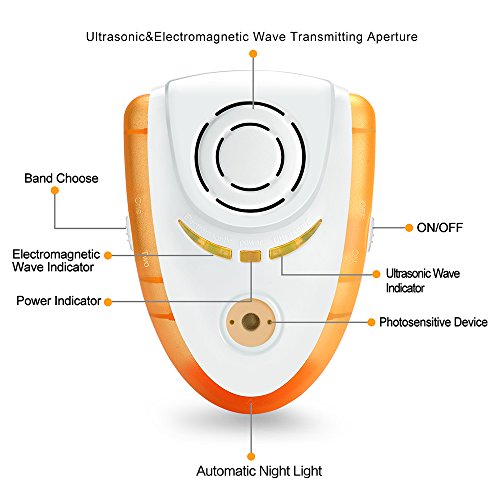 Effectively Drive Pests Away:Our Electronic Plug In Pest Repellent uses the Ultrasonic Electromagnetic wave physical rejection technology to drive out pests and rodents,perfect make your home Insect Free.Multi-frequency ultrasonic waves ensure Pests and Rodents do not get immune to the sounds.This function is the most cutting-edge technology in current similar Ultrasonic Pest repeller products.