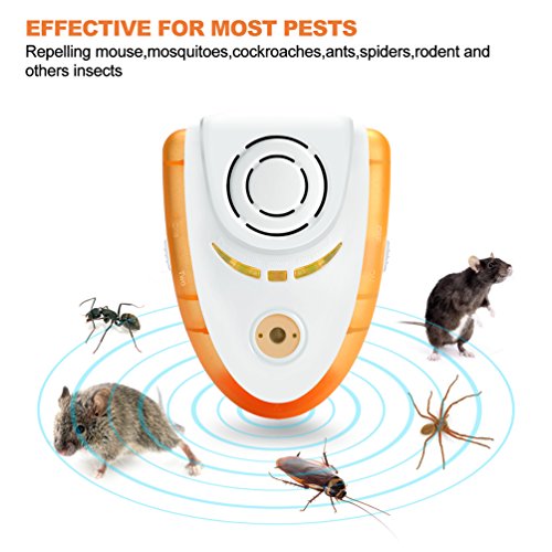 Eco Friendly,Chemical Free&Cruelty-Free:The Ultrasonic Bug Repellent protect your home from annoying pests without using any kind of poisons,sprays,traps or harmful chemicals that smell horrible and burns your eyes.It doesn’t inhumanely kill pests,it just repels them and makes certain that they will not come back to your house again.It's the Best pest reject product for bugs mice fleas spiders ants rats roaches flies mosquitoes,and all types of rodents&insects.