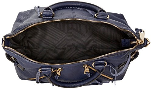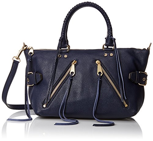 Product DescriptionA signature Rebecca Minkoff satchel, rendered in pebbled leather. 2 diagonal zip pockets with long pulls accent the front. Top zip and lined, 4-pocket interior. Rolled handles and optional, adjustable shoulder strap.0